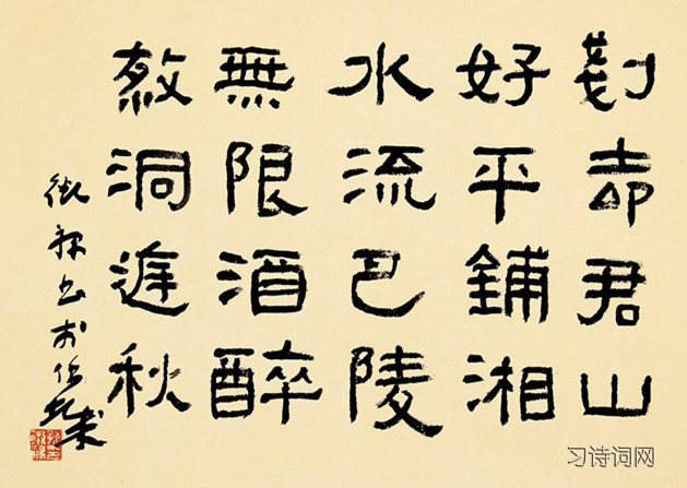 第三首:“刬却君山好,平铺湘水流”,铲去挡住湘水一泻千里直奔长江大海的君山,就好像李白想铲去人生道路上的坎坷障碍。“巴陵无限酒,醉杀洞庭秋”,既是自然景色的绝妙的写照,又是诗人思想感情的曲折的流露,流露出他也希望象洞庭湖的秋天一样,用洞庭湖水似的无穷尽的酒来尽情一醉,借以冲去积压在心头的愁闷。这首诗,前后两种奇想,表面上似乎各自独立,实际上却有着内在联系。联系它们的纽带就是诗人壮志未酬的千古愁、万古愤。酒和诗都是诗人借以抒愤懑、豁胸襟的手段。诗人运用独特的想像,不假安排,自然拈出“刬却君山好,平铺湘水流”的诗句。“巴陵无限酒,醉杀洞庭秋”句设喻巧妙,令人回味。只有处在这种心情下的李白,才能产生这样奇特的想象;也只有这样奇特的想象,才能充分表达此时此际李白的心情。