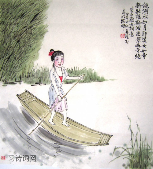 镜瑚的水清明如月,若耶溪的少女洁白如雪。