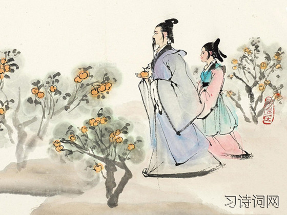 丹橘的命运、遭遇,在心中久久萦回,诗人思绪难平,终于想到了命运问题:“运命惟所遇,循环不可寻。”看来运命的好坏,是由于遭遇的不同,而其中的道理,如周而复始的自然之理一样,是无法追究的。这两句诗感情很复杂,看似无可奈何的自遣之词,又似有难言的隐衷,委婉深沉。最后诗人以反诘语气收束全诗:“徒言树桃李,此木岂无阴?”──人家只忙于栽培那些桃树和李树,硬是不要橘树,难道橘树不能遮阴,没有用处吗?在前面,已写了它有“经冬犹绿林”的美荫,又有“可以荐嘉客”的佳实,而“所遇”如此,这到底为什么?《韩非子。外储说左下》里讲了一个寓言故事:阳虎对赵简主说,他曾亲手培植一批人才,但他遇到危难时,他们都不帮助他。