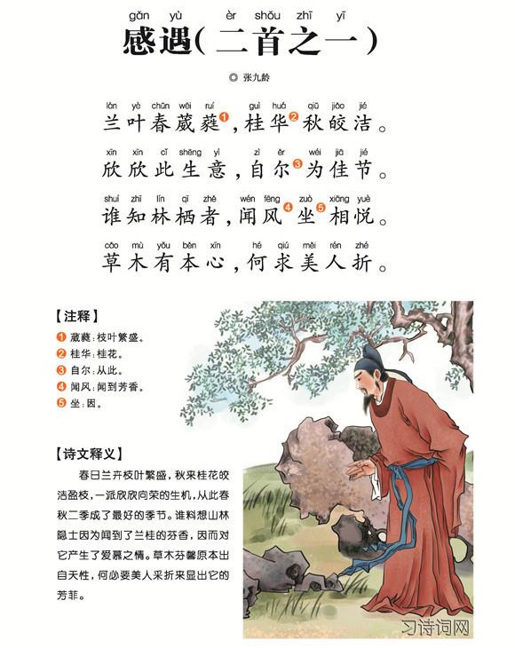 1、感遇:古诗题,用于写心有所感,借物寓意之诗。