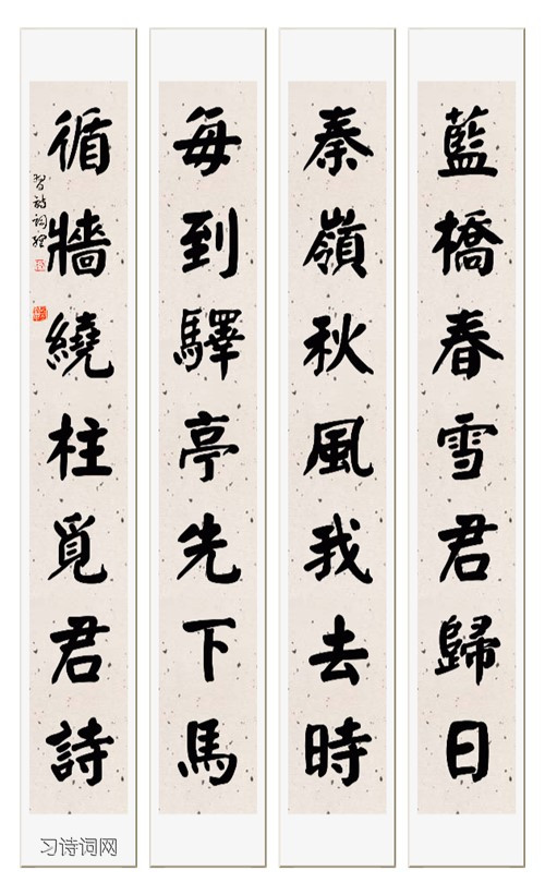 蓝桥驿春雪飘飘当初你归来之日,秦岭上秋风飒飒如今我离去之时。