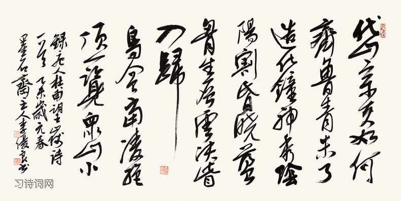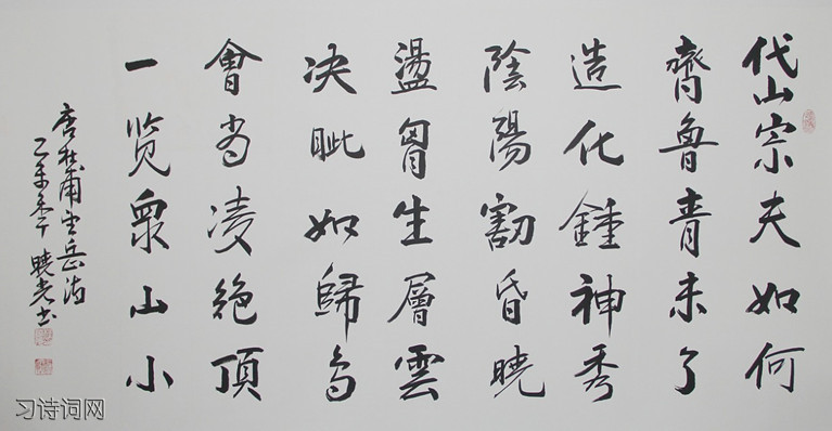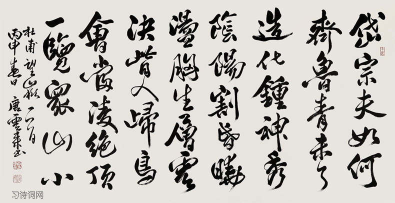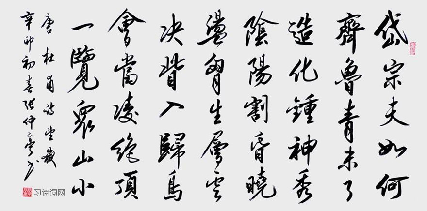 清·施补华《岘佣说诗》:《望岳》一题,若入他人手,不知作多少语,少陵只以四韵了之,弥见简劲。“齐鲁青未了”五字,囊括数千里,可谓雄阔。