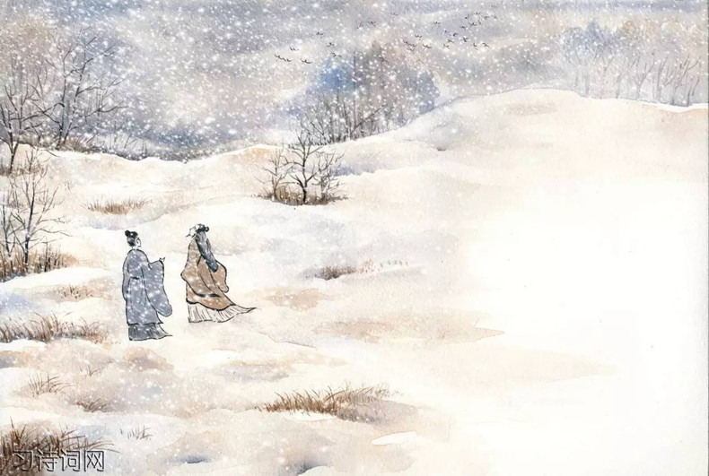 “千里黄云白日曛,北风吹雁雪纷纷。”这两句以其内心之真,写别离心绪,故能深挚;以胸襟之阔,叙眼前景色,故能悲壮。落日黄云,大野苍茫,唯北方冬日有此景象。此情此景,若稍加雕琢,即不免斫伤气势。高适于此自是作手。日暮黄昏,且又大雪纷飞,于北风狂吹中,唯见遥空断雁,出没寒云,使人难禁日暮天寒、游子何之之感。以才人而沦落至此,几使人无泪可下,亦唯如此,故知己不能为之甘心。头两句以叙景而见内心之郁积,虽不涉人事,已使人如置身风雪之中,似闻山巅水涯有壮士长啸。此处如不用尽气力,则不能见下文转折之妙,也不能见下文言辞之婉转,用心之良苦,友情之深挚,别意之凄酸。
