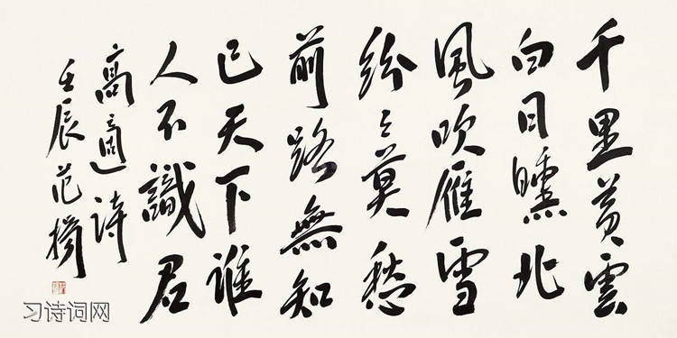 千里黄云蔽天日色暗昏昏,北风吹着归雁大雪纷纷。