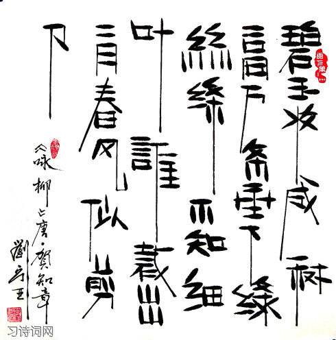 总的来说,这首诗的结构独具匠心,先写对柳树的总体印象,再写到柳条,最后写柳叶,由总到分,条序井然。在语言的运用上,既晓畅,又华美。