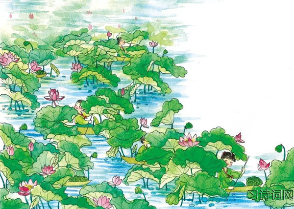第一首诗写水乡姑娘的采莲活动。