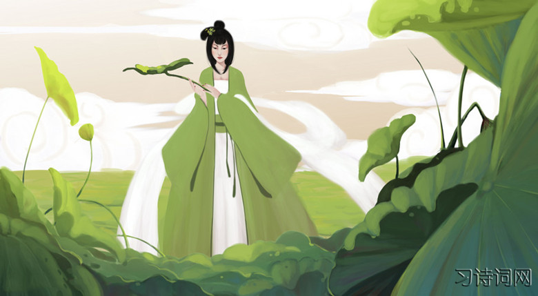 荷叶罗裙一色裁,芙蓉向脸两边开。