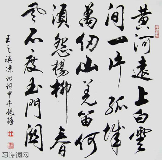 《诗境浅说续编》:此诗前二句之壮采,后二句之深情,宜其传遍旗亭,推为绝唱也。