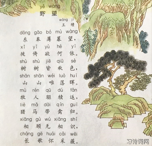 读熟了唐诗的人,也许并不觉得这首诗有什么特别的好处。可是,如果沿着诗歌史的顺序,从南朝的宋、齐、梁、陈一路读下来,忽然读到这首《野望》,便会为它的朴素而叫好。南朝诗风大多华靡艳丽,好像浑身裹着绸缎的珠光宝气的贵妇。从贵妇堆里走出来,忽然遇见一位荆钗布裙的村姑,她那不施脂粉的朴素美就会产生特别的魅力。王绩的《野望》便有这样一种朴素的好处。