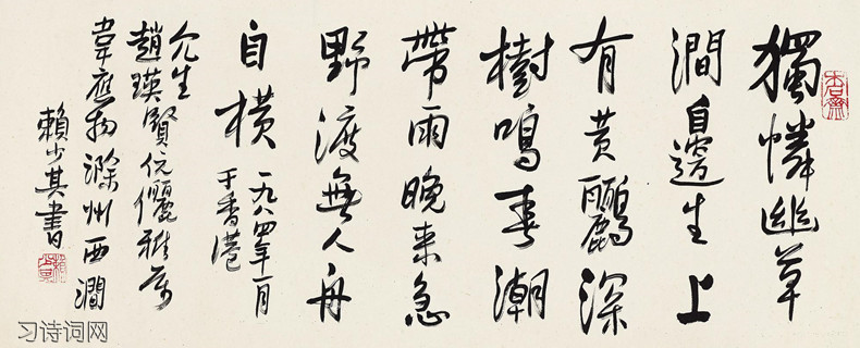 王文濡《唐诗评注读本》:先以“涧边幽草”、“深树黄鹂”引起,写西涧之景,历历如绘。