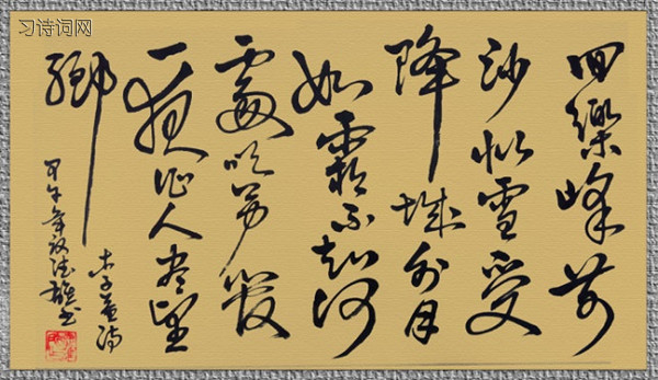 诗歌的前两句描写了一幅边塞月夜的独特景色.举目远眺,蜿蜒数十里的丘陵上耸立着座座高大的烽火台,烽火台下是一片无垠的沙漠,在月光的映照下如同积雪的荒原。近看,高城之外月光皎洁,如同深秋的寒霜。沙漠并非雪原,诗人偏说它“似雪”,月光并非秋霜,诗人偏说它“如霜”。诗人如此运笔,是为了借这寒气袭人的景物来渲染心境的愁惨凄凉。正是这似雪的沙漠和如霜的月光使受降城之夜显得格外空寂惨淡。也使诗人格外强烈地感受到置身边塞绝域的孤独,而生发出思乡情愫。