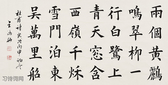 两个黄鹂鸣翠柳,一行白鹭上青天。