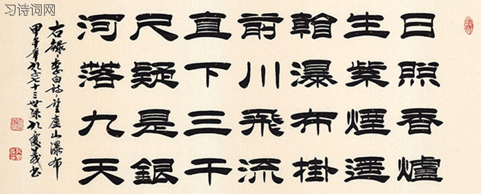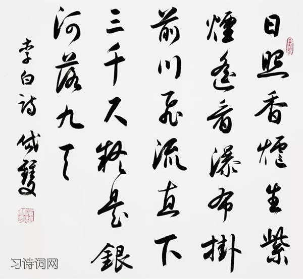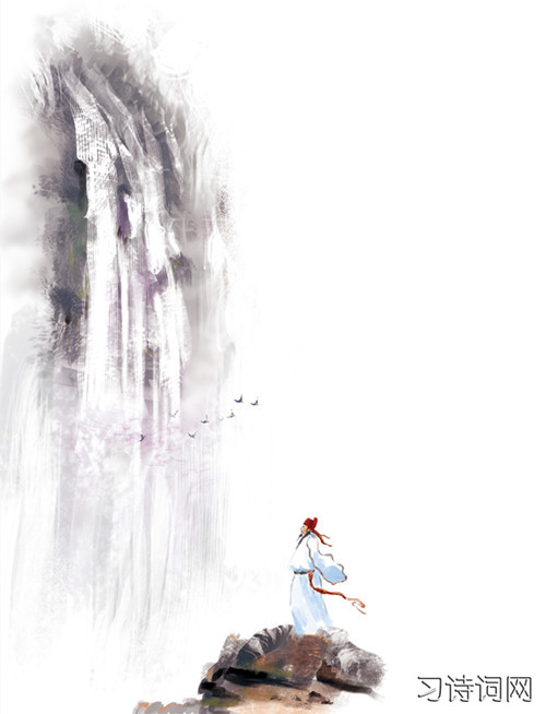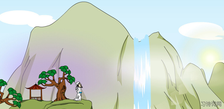 宋人魏庆之说:“七言诗第五字要响。……所谓响者,致力处也。”(《诗人玉屑》)这个看法在这首诗里似乎特别有说服力。比如一个“生”字,不仅把香炉峰写“活”了,也隐隐地把山间的烟云冉冉上升、袅袅浮游的景象表现出来了。“挂”字前面已经提到了,那个“落”字也很精彩,它活画出高空突兀、巨流倾泻的磅礴气势。很难设想换掉这三个字,这首诗将会变成什么样子。